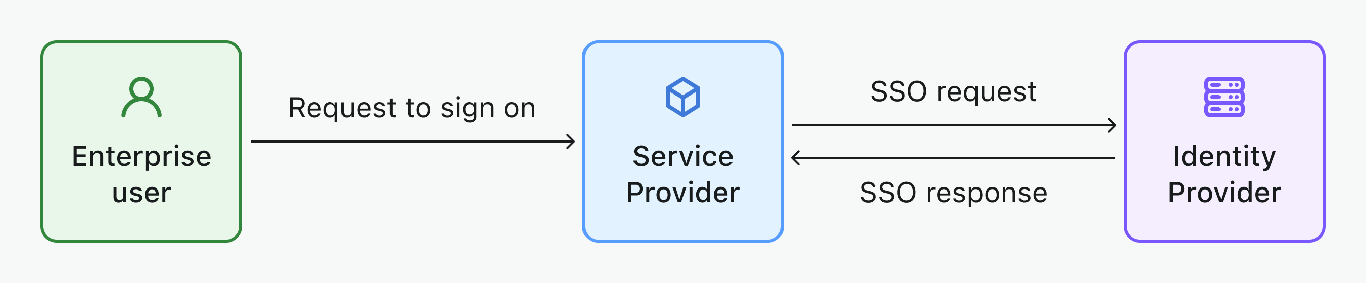 - Service provider (SP): A system or application that requires user authentication and relies on the Identity Provider (IdP) for authentication. The SP receives authentication tokens or assertions from the IdP, granting access to its resources without requiring separate login credentials. Examples: Slack, Shopify, Dropbox, Figma, Notion, etc…and your service. Learn more about SP.